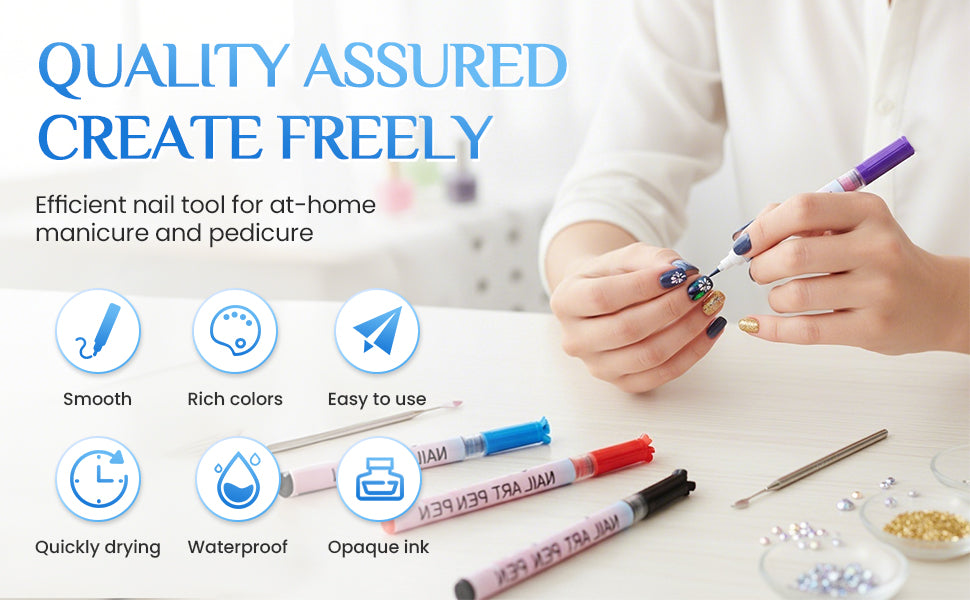 Formulated for smooth ink flow and long-lasting performance, these pens glide easily over gel, acrylic, and natural nails. Perfect for beginners, nail lovers, and professional artists alike, this complete set empowers you to design salon-quality looks anytime, anywhere.